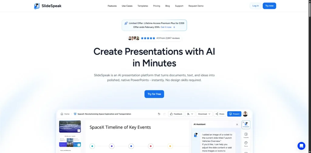 If you already have the content written and just need to turn documents into narrated slides, SlideSpeak’s voice narration and document chat features make conversion seamless.