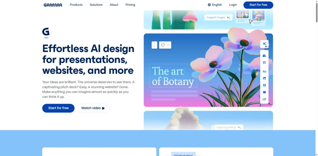 Gamma is an AI-powered tool for creating interactive, web-style presentations and documents. You write in plain language, and it designs a visually engaging, scrollable page that works perfectly on any device.