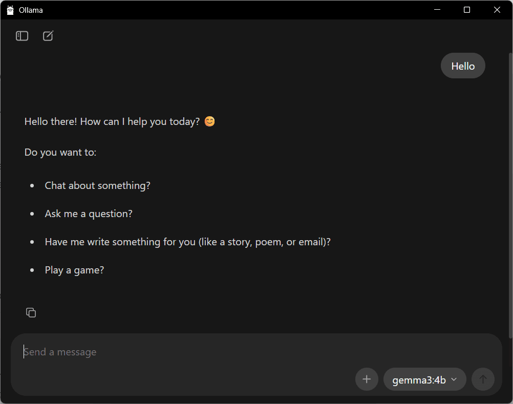 Replace with a model you’ve installed. Most SDKs or direct HTTP clients can handle streaming responses and additional options like temperature, max tokens, and stop sequences.